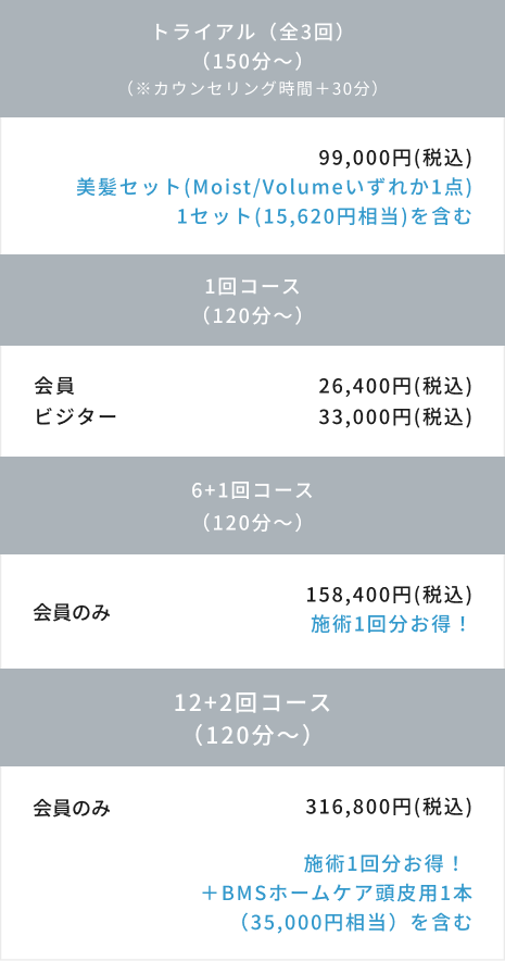• ・根本から髪質を改善し、ハリ・コシ・ツヤのある美しい髪を目指している方