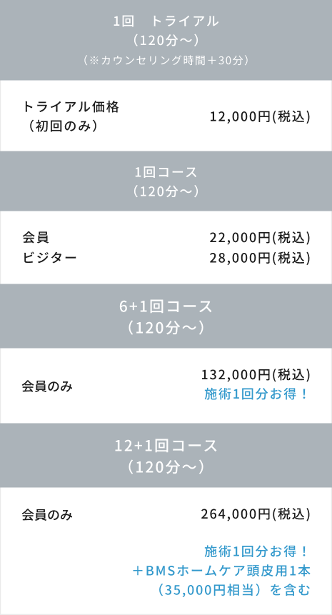 だからこそ可能な「全部盛り」スカルプスパ、しかもトライアルは12,000 円と超コスパ良し。